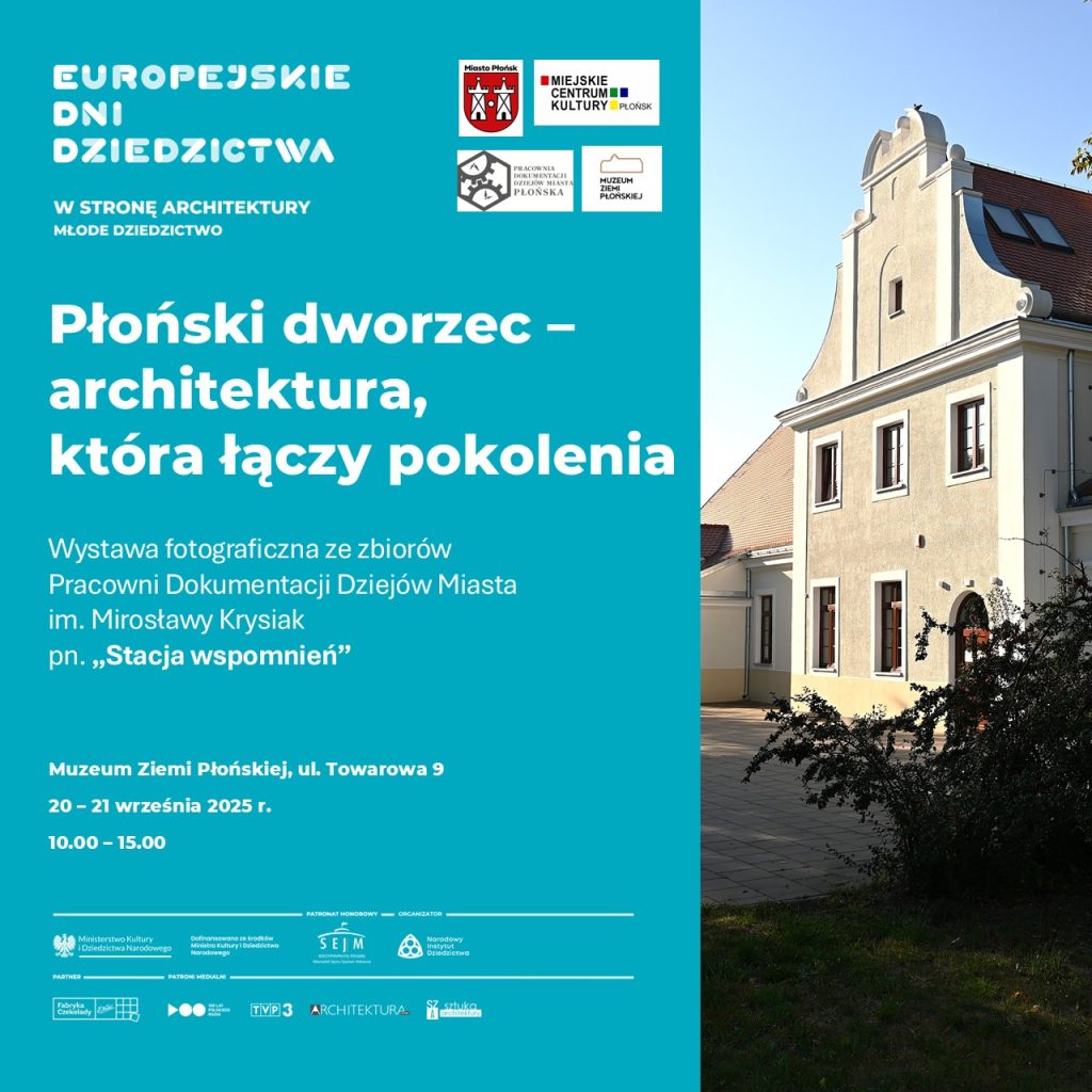 W siedzibie Muzeum Ziemi Płońskiej i Pracowni Dokumentacji Dziejów Miasta im. M. Krysiak w dniach 20–21 września 2025 r. odbyło się wydarzenie zorganizowane w ramach 33. edycji Europejskich Dni Dziedzictwa, któremu towarzyszyło hasło „W stronę architektury. Młode dziedzictwo”. Tematem przewodnim była architektura i sztuka XX wieku – dziedzictwo nierzadko niedoceniane, a jednocześnie niezwykle ważne dla naszej kulturowej tożsamości.